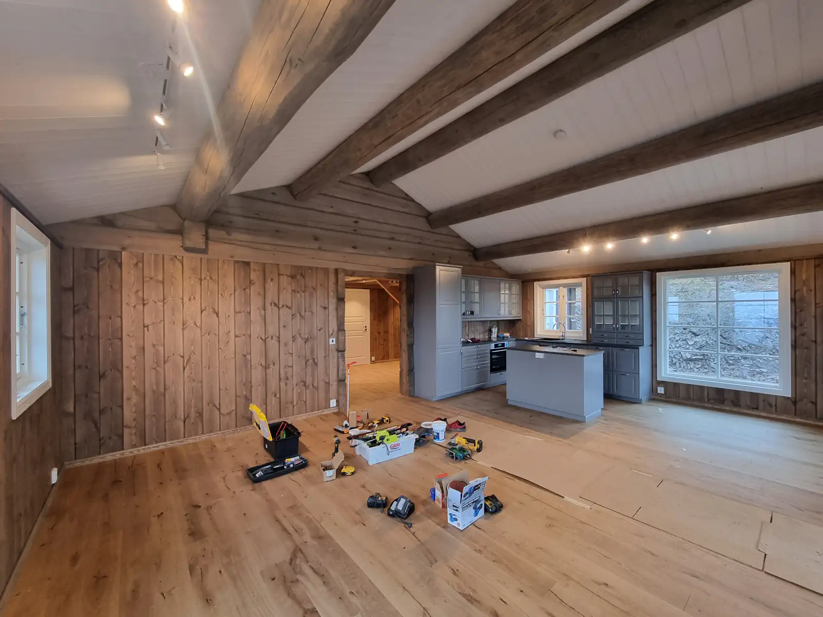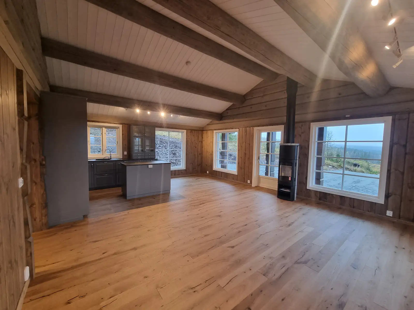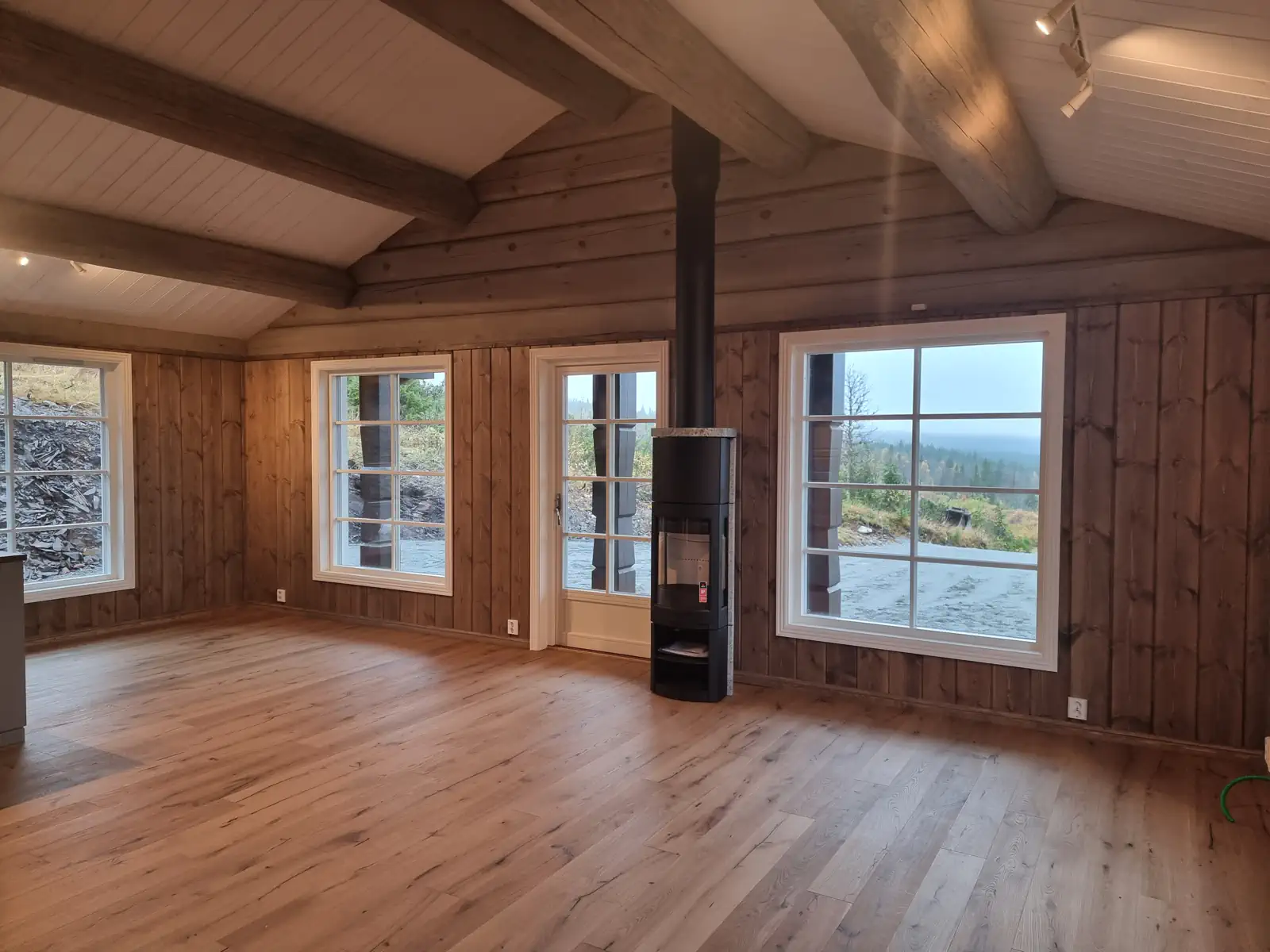 Timber Kit-teamet var involvert i alle stadier av prosjektgjennomføringen, fra produksjon av treramme og tømmerhuselementer i fabrikken vår til montering og etterbehandling på stedet.