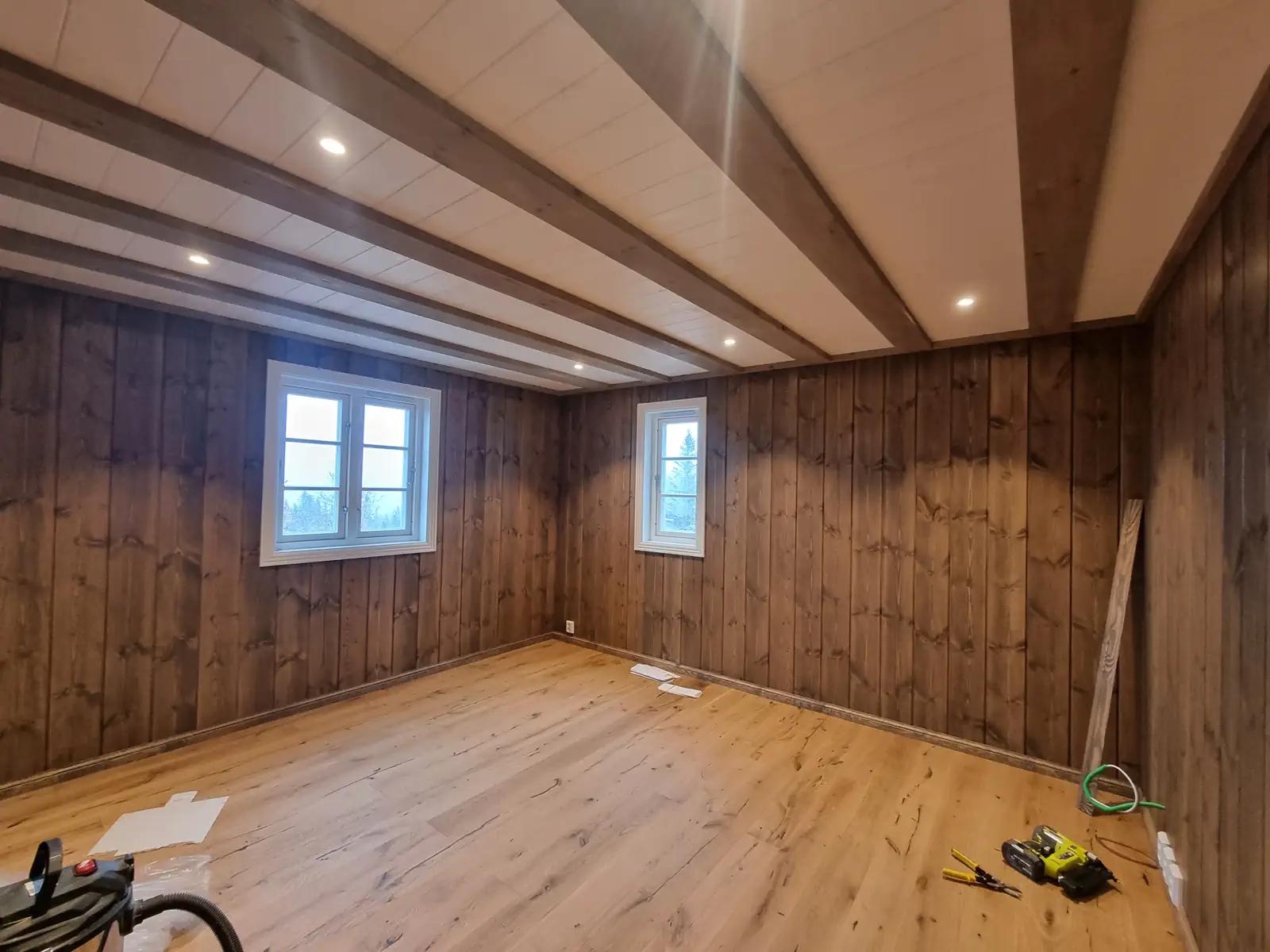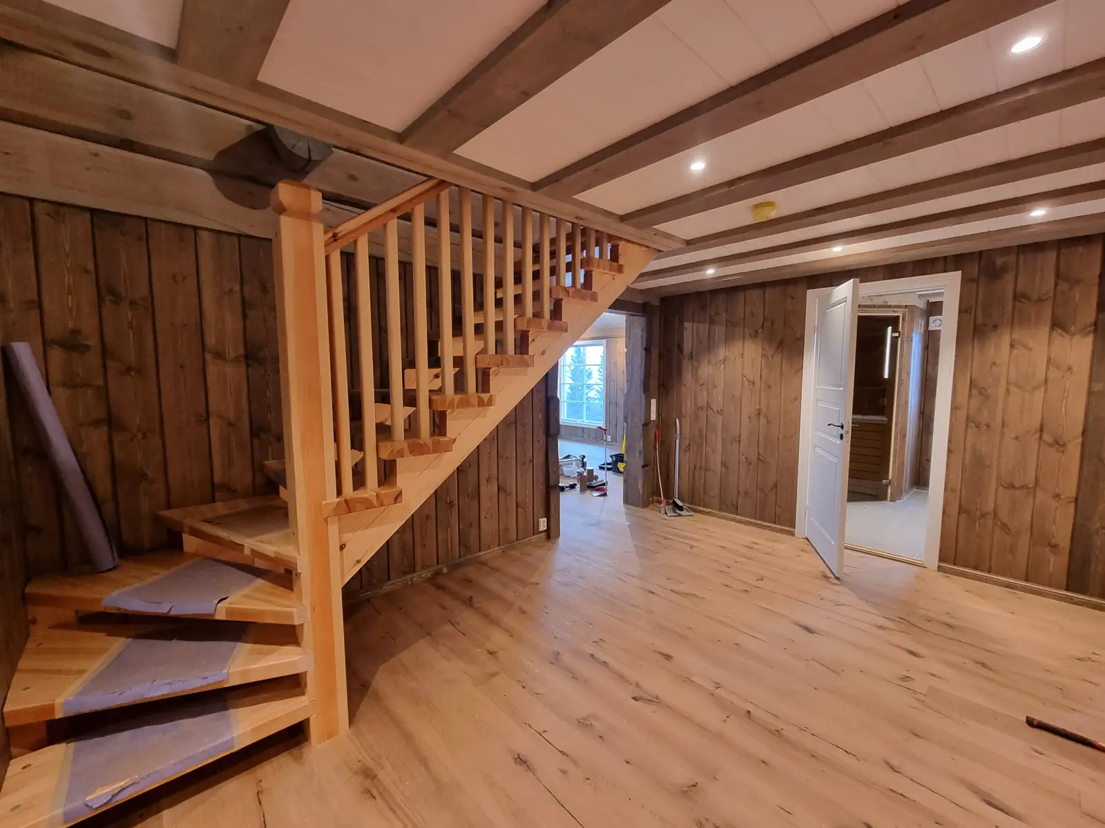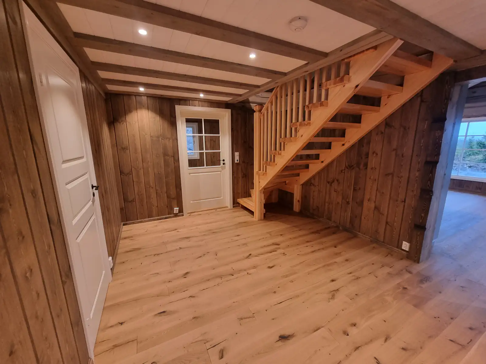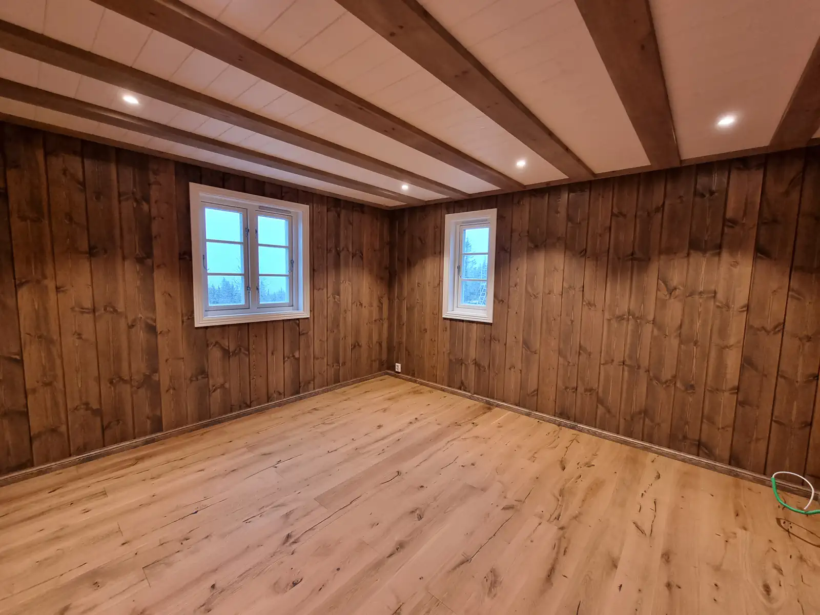 Timber Kit-teamet var involvert i alle stadier av prosjektgjennomføringen, fra produksjon av treramme og tømmerhuselementer i fabrikken vår til montering og etterbehandling på stedet.